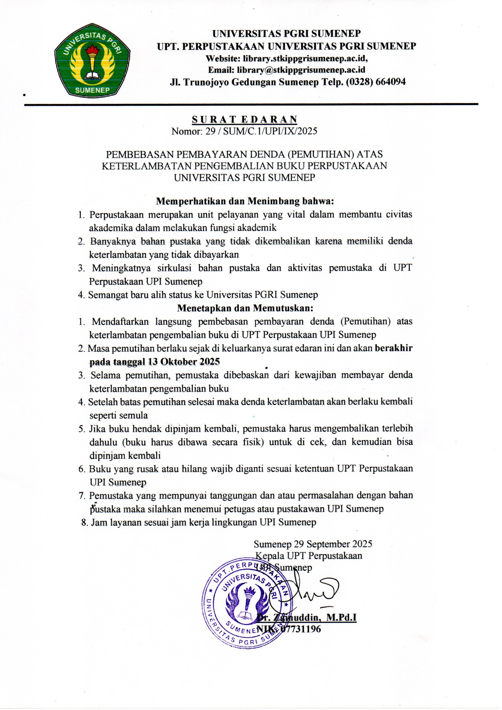 PEMBEBASAN PEMBAYARAN DENDA Posted on September 30, 2025September 30, 2025 by Staff Perpustakaan0Leave a Reply Cancel replyYour email address will not be published. Required fields are marked *Comment *Name * Email * Website Δ